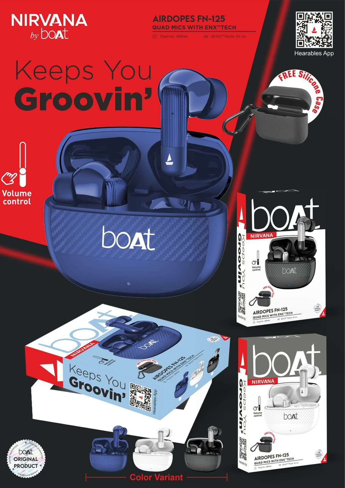 Realme Boat FN 125 Earbuds In 6 Month Guarantee With Silicon Cover Free in Box